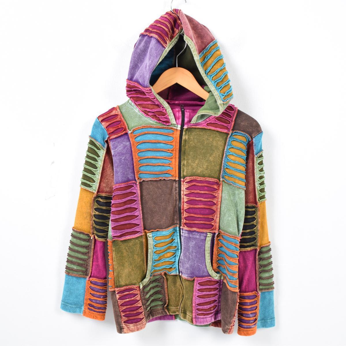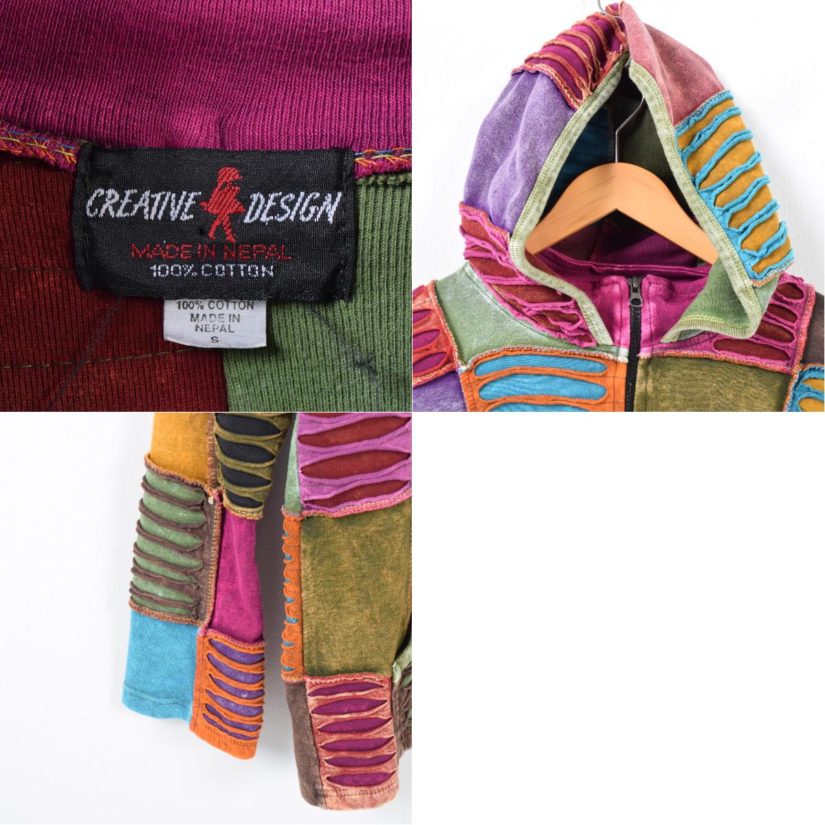CREATIVE DESIGN 総柄 パッチワーク スウェットフルジップパーカー ネパール製 レディースS /wak0214 【中古】【古着屋JAM】 【171217】【PD1804-3】【SS1901】