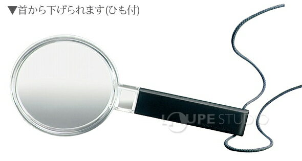 倍率:2倍、レンズサイズ:φ100mm グリップ部に高倍率小レンズ付(5倍) 首から下げられます。