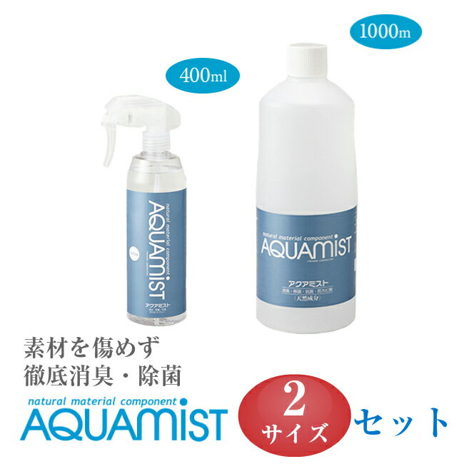 浄化スプレー アクアミスト 2サイズセット 400mlスプレー & 1L詰め替えボトル セット AQUAMIST 消臭 除菌 抗菌 防カビ 食中毒予防 ウイルス対策 無臭 無香料 天然由来成分 エコ キッズルーム キッズスペース インフルエンザ 予防 対策 ノロウイルス 消毒