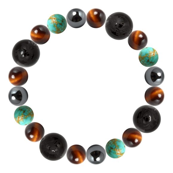 こちらのデザインは、大粒14mmの四神ブラックオニキスに、レッドタイガーアイとターコイズを組み合わせました。